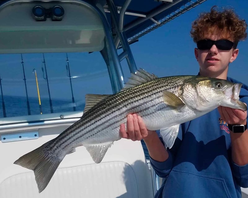 I took my niece out - it was her first fishing experience. Jim was a great teacher; patient and lots of fun. Enjoyed a beautiful afternoon on the water catching Stripers, Bluefish and Bonito. Top notch boat and a great guide. I would highly recommend a trip with Blue Bandit!