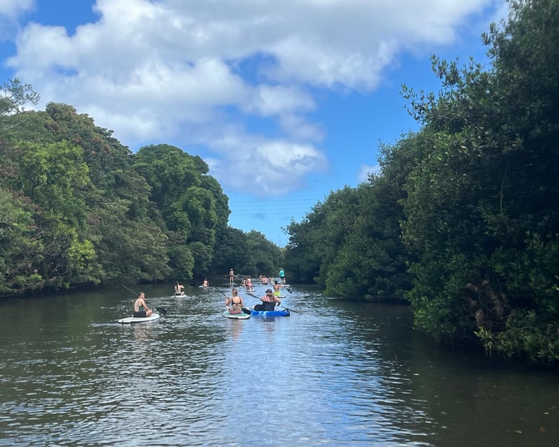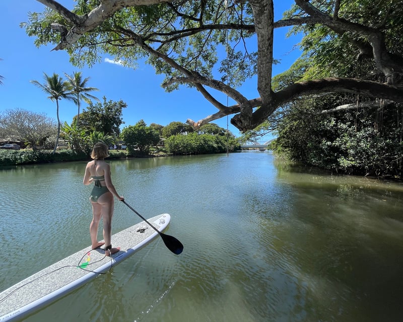 Blue Planet stands out for its genuinely helpful staff who seem to remember that vacation activities should actually be fun and stress-free. Names like Julie, Jonathan, Cree, Patrick, Mac, and Cesar pop up repeatedly, with reviewers consistently praising how these folks make everyone feel comfortable, whether you're six or seventy-two years old. The location itself is a winner for families and first-timers: you're paddling on the calm Anahulu River rather than fighting ocean waves, which means less intimidation and more time actually enjoying yourself. The easy water access is a nice touch too, so you're not lugging heavy equipment across a beach in the hot sun. What really comes through is how well this setup works for different kinds of visitors. Complete beginners get patient instruction that has them standing on paddleboards quicker than expected. Families with small kids appreciate the mellow vibe and the bridge jumping spot that keeps older children entertained. The sea turtles make regular appearances throughout the river, which seems to be a highlight for just about everyone. Equipment quality gets consistent mentions, whether people are renting surfboards, kayaks, or SUPs. If you're on the North Shore and want a laid-back water activity that won't stress out inexperienced paddlers or require you to be in peak athletic form, this spot delivers exactly what it promises.