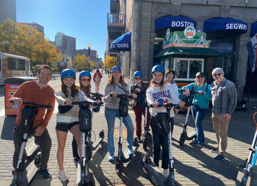 Glide on electric scooters through historic Boston and innovative Cambridge with lunch and photos included