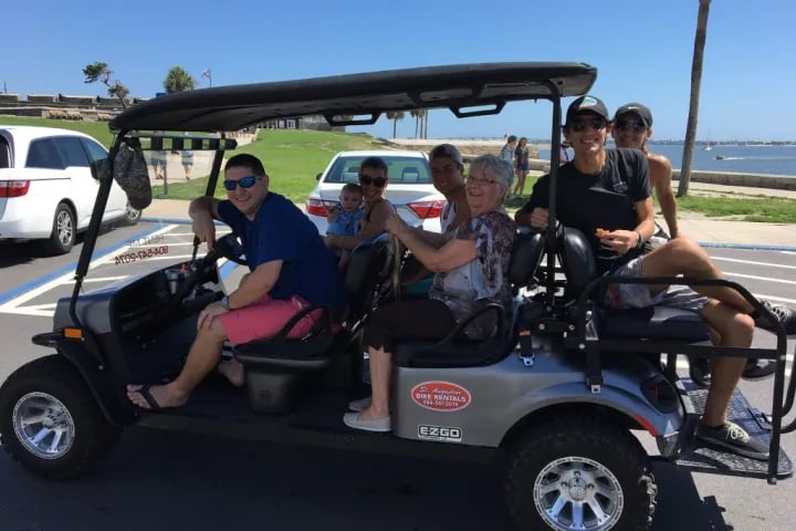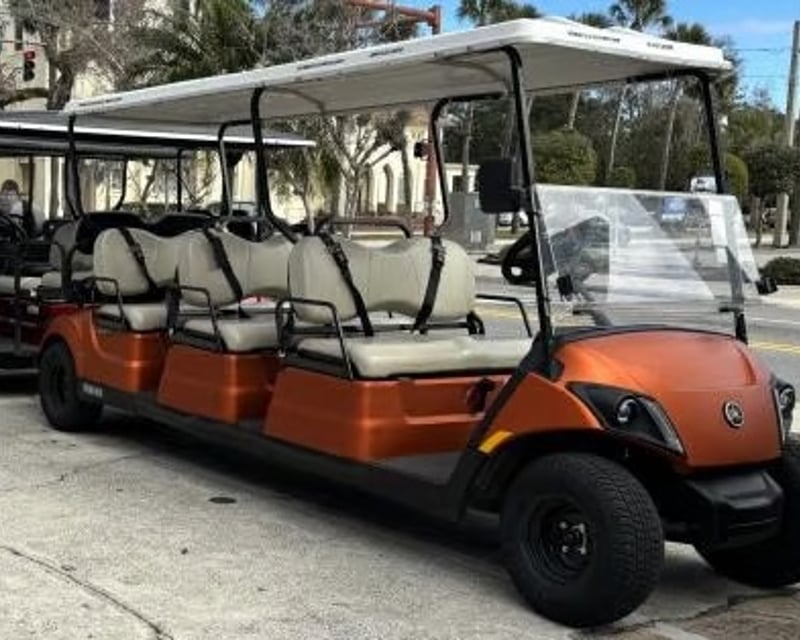 One of THE BEST rental experiences! Our Canadian visitors received the VIP royal treatment in this 6-passenger golf cart, with hop on/off access to St. Augustine’s historic and premier hotspots and closeup views of the fireworks over the Bridge of Lions. We felt like celebrities too! Much fun and worth it!