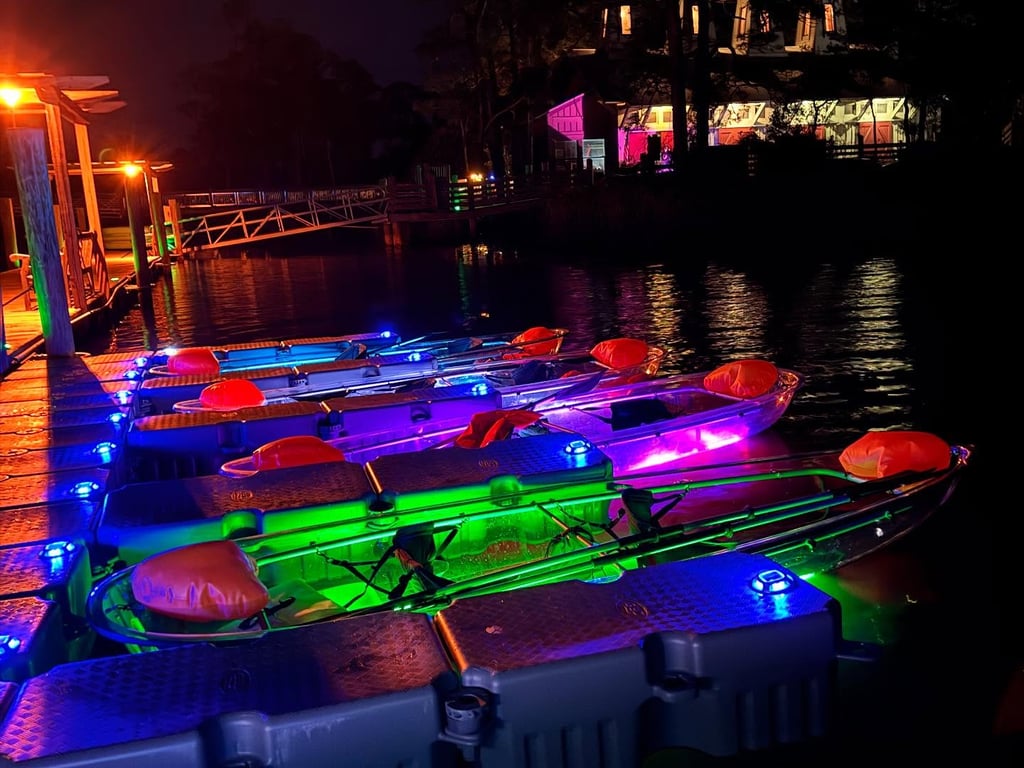 Bring 8+ for a glowing kayak outing with perks like picnic tables and glow sticks