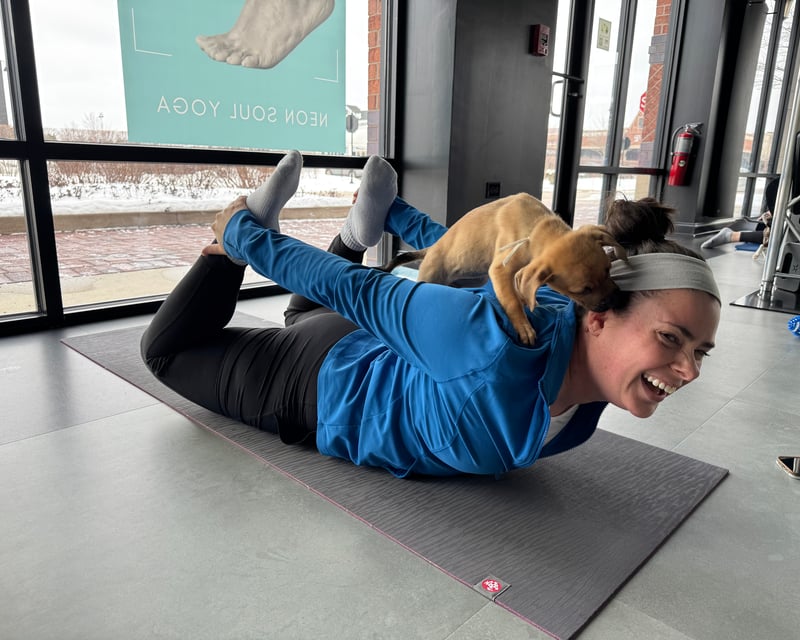 Flow through gentle poses and play with rescue puppies during a 1-hour indoor session.
