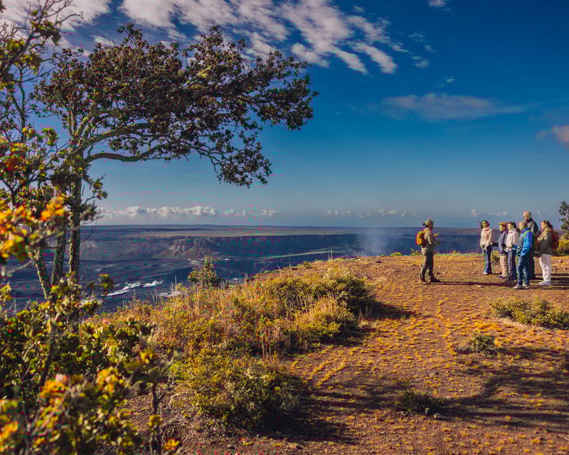 See Hawaii Volcanoes National Park, a cacao farm, and Rainbow Falls with certified guides in a full-day adventure