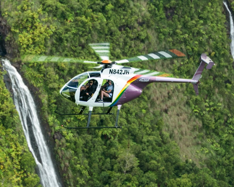 Feel the breeze on a 60–65 minute doors-off flight over Kauai’s waterfalls, canyons, and sea cliffs