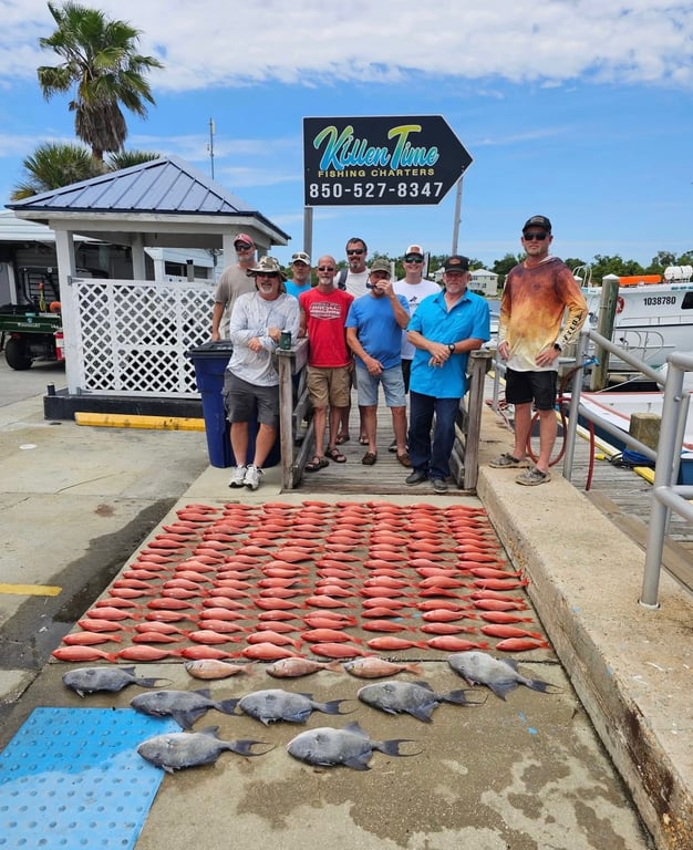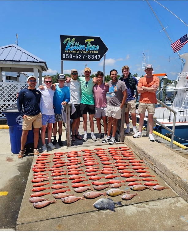 Captain Chris and his crew, particularly deckhand Landon, consistently deliver excellent fishing experiences out of Panama City Beach. Reviewers rave about Landon's tireless work ethic — he's constantly baiting lines, gaffing fish, untangling rigs, and keeping everyone engaged throughout the trip. Multiple guests mention catching impressive hauls including red snapper, mahi mahi, king mackerel, and various other species, with one group bringing in 115 pounds of fish in a single outing. The captain clearly knows the local waters and where to find the fish, even managing to keep guests successful in rougher conditions with 3-4 foot waves. First-timers feel particularly well taken care of, with the crew showing patience and attentiveness to those new to offshore fishing. The boat stays clean, and the overall professionalism shines through from start to finish. Return customers keep coming back, which speaks volumes about the consistent quality of these trips.