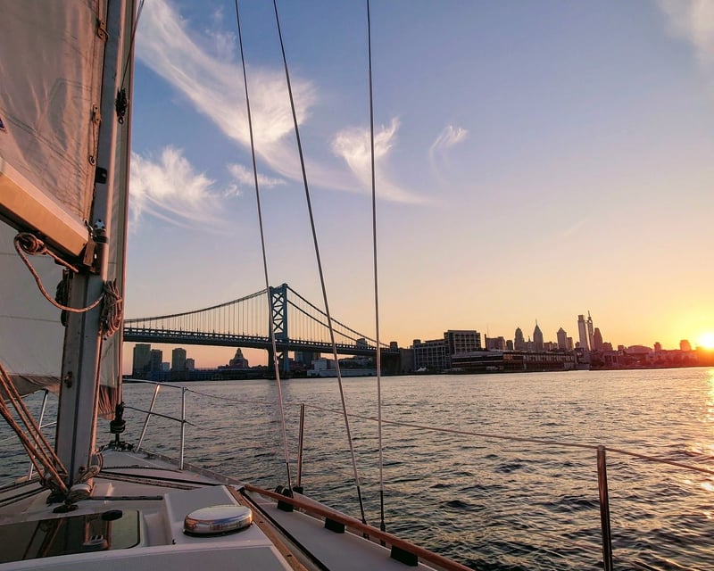 Enjoy golden-hour views of the Delaware River, bridges, and piers on a relaxed 1.5-hour sail