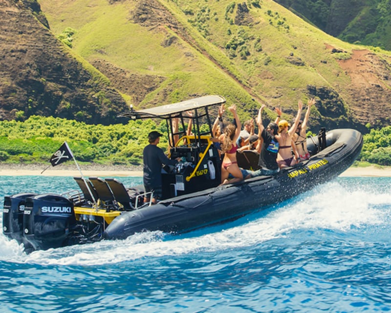 Ride fast rafts in calmer morning seas with chances to spot dolphins along the Na Pali Coast