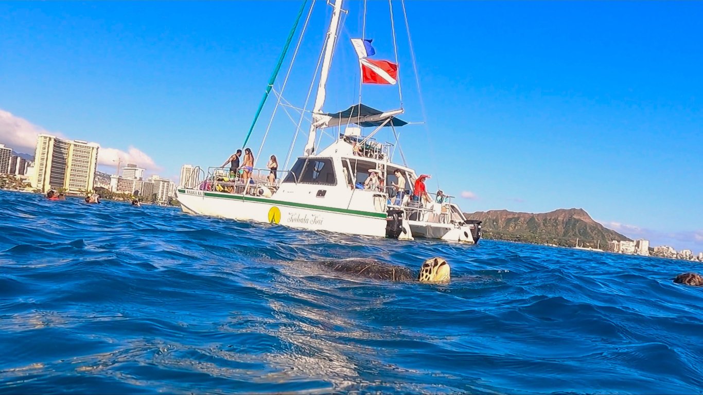 With more than 30 years sailing Waikiki’s crystalline waters, locally owned Oahu Catamarans welcomes you aboard the newly refurbished 40-foot Kahala Kai. The spacious twin-hulled craft hosts intimate turtle-snorkel excursions, sun...