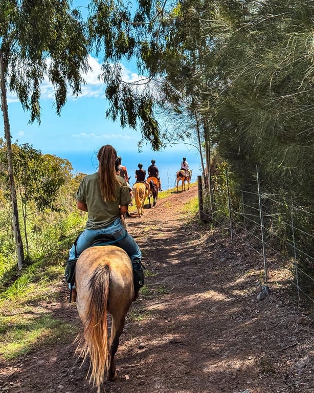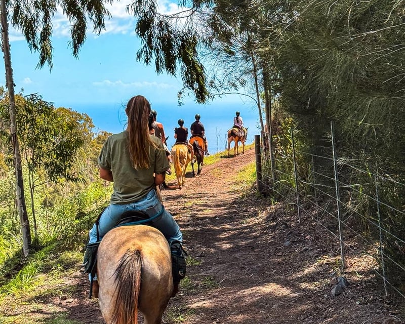This low-key operation wins hearts with its gentle horses and knowledgeable guides who make everyone feel comfortable, even first-timers. Reviewers consistently praise horses like Ohia, Hawaiian, Lani, and Sky for their sweet temperaments and patience with nervous riders. The guides—including Alyssa, Grace, Madison, and Ciara—get called out for being friendly, safety-conscious, and sharing interesting details about the land and horses. The ride offers beautiful ocean views and shaded forest sections, with sunset rides being especially popular. Expect a simple, relaxed vibe rather than a polished commercial experience. The horses are clearly well-cared for, and there's time after rides to feed and interact with them, which guests love. Getting there involves a dirt road, though regular Ubers manage it fine with advance scheduling. One rider wished there were designated photo stops along the trail, something other operations apparently do. Plan on getting dusty from the red clay terrain, but that seems part of the authentic mountain riding experience that keeps people recommending this spot for both beginners and experienced riders alike.