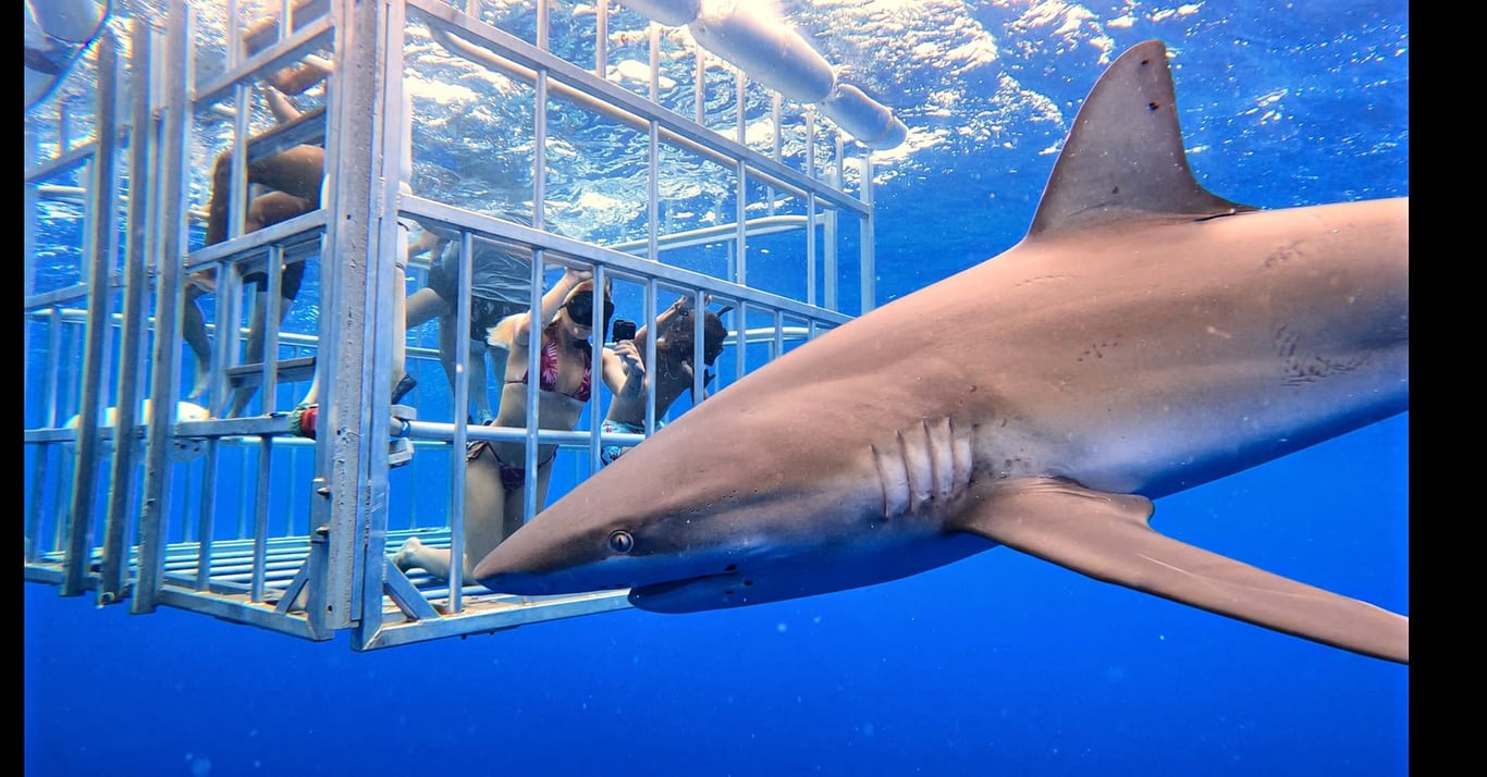 North Shore Shark Adventures delivers consistently exceptional shark cage diving experiences with a crew that genuinely cares about both safety and guest enjoyment. Reviewers repeatedly praise the knowledgeable, friendly staff who create a comfortable atmosphere even for those nervous about sharks or open water. The crew's passion for marine life shines through, and they're known for going above expectations—one guest was allowed to stay in the cage for both rotations when they were having such a great time. Expect to see plenty of Galapagos sharks, typically 15-20 per trip, with occasional bonus sightings of dolphins and other marine life. The experience itself involves a relaxing 15-20 minute boat ride to the cage, where groups of about six take turns in the water for roughly 15 minutes each. The boat offers both sunny and shaded seating options. Multiple reviewers mention this is their second or third time booking, which speaks volumes about the quality. Motion sickness medication is recommended given the open water conditions. Plan to use facilities before boarding since there's no bathroom on the boat and the harbor restrooms are pretty basic.