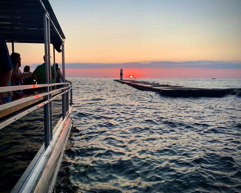 We had a fabulous cruise at sunset. Thad and John were the perfect hosts. Thad took us up the channel into the lake with perfect timing to see the sunset in lake Michigan. Lovely!