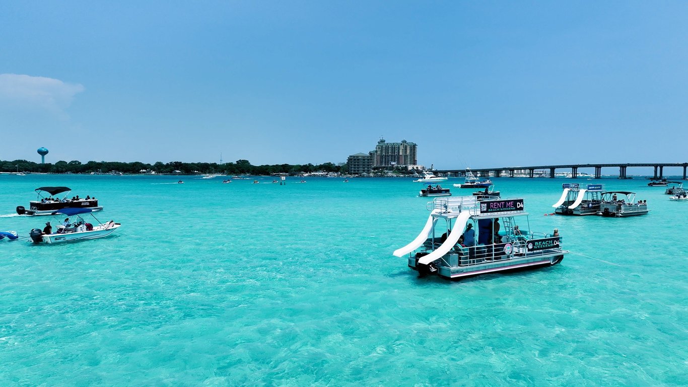 Beach Weekend Marina turns any day into a Saturday on the Emerald Coast. Choose from a pristine fleet of more than 60 pontoons—from easy single-deck cruisers to double-deckers with waterslides and tiki flair—then cast off for Crab...