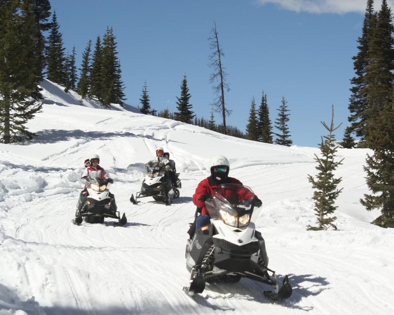 Enjoy high-country scenery and mountain views on a guided snowmobile adventure