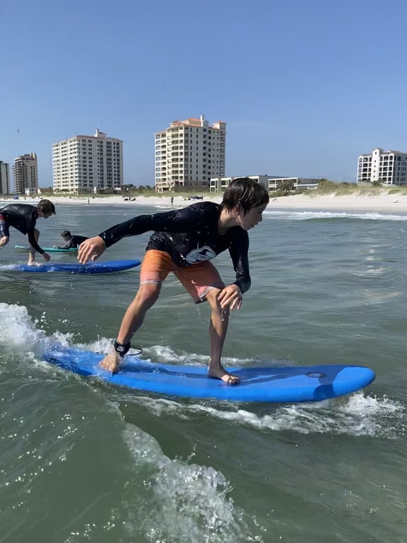 Thompson Surf stands out for what really matters when you're trusting instructors with your kids in the ocean: genuine expertise paired with exceptional safety awareness. Parents consistently praise Evan and the team for maintaining low student-to-instructor ratios and positioning themselves strategically near lifeguard stands. What sets this operation apart isn't just getting people up on boards (though complete beginners regularly stand up within their first hour), it's the educational approach. Instructors take time to teach about oceanography, rip currents, and water safety rather than simply acting as chaperones, which multiple families specifically noted after disappointing experiences elsewhere. The enthusiasm in these reviews is infectious. Kids beg to return, talk about nothing else after lessons, and even offer to run lemonade stands to earn money for their own surfboards. Instructors like Evan, Tristan, Shane, Brody, and others get called out by name for being patient, perceptive, and skilled at working with wide age ranges from 6 to adults. The camp format appears exceptionally well organized, with bright rash guards for visibility and thoughtful logistics that impressed even nervous first-time surf parents. Whether you book private lessons or multi-day camps, the feedback suggests you're getting professional instruction that balances fun with substance. One telling detail: families who've tried surf schools in Hawaii, Costa Rica, and other destinations still rated this as their favorite experience.