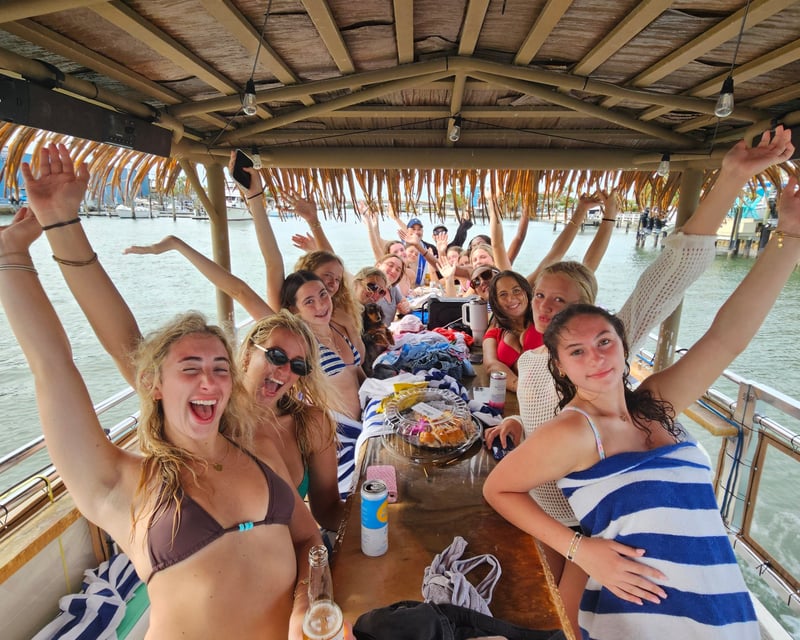 Celebrate with your crew on a private BYOB tiki boat for four hours of music and views