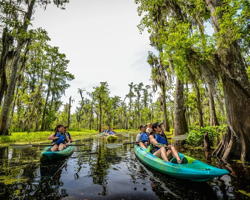 This kayak tour delivers exactly what travelers hope for when they picture gliding through Louisiana's swamps. The guides here are the real deal – locals like Al, Gerald, AJ, and Terry who grew up hunting and fishing these waters. They've got that perfect combination of encyclopedic knowledge about the ecosystem and genuine enthusiasm that makes learning about banana spiders and cypress trees genuinely fun. Reviewers consistently mention how personable and accommodating the guides are, including one sweet note about Gerald being patient when a three-year-old kept interrupting with questions. International visitors are having a blast too, with reviews in German and Spanish praising the wildlife sightings and overall experience. Speaking of wildlife, you're practically guaranteed to see alligators (lots of them, both on banks and swimming nearby), plus turtles, herons, egrets, and occasionally bald eagles or raccoon families. The tour runs about two hours on calm water, making it accessible even for first-time kayakers and young children. One reviewer mentioned their guide kept them out over three hours because he wanted to show them everything without rushing. The vibe is relaxed and flexible – you can paddle ahead on your own or stay close to hear the guide's stories about the bayou's history and legends. Just bring your own water and sunscreen, and maybe bug spray depending on conditions. The company also seems to handle hiccups well, with one reviewer praising Josh for going above and beyond when flooding forced a last-minute reschedule.