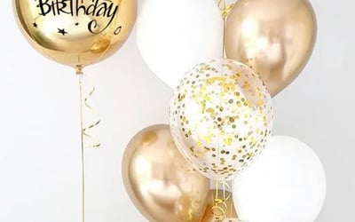 Includes birthday balloons, a personalized birthday cake with name, and a bright birthday banner to set the party mood.