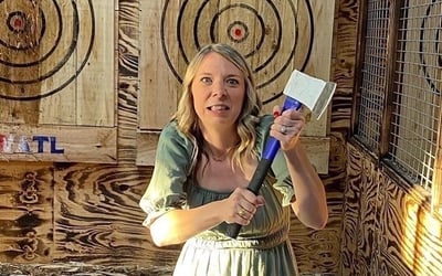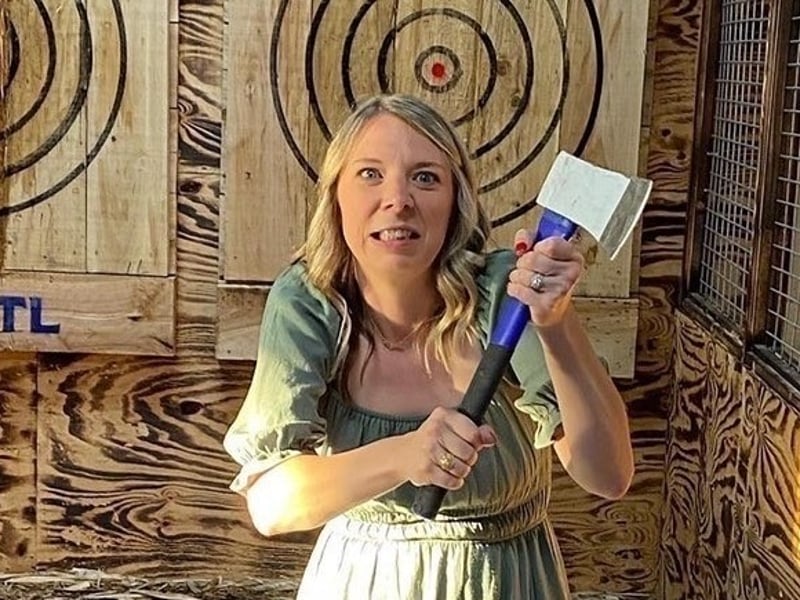 Try axe throwing at Flying Squirrel Axe Throwing with interactive projected targets and games. Learn safety and technique from a certified coach so you can stick the axe.