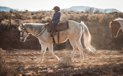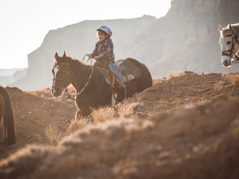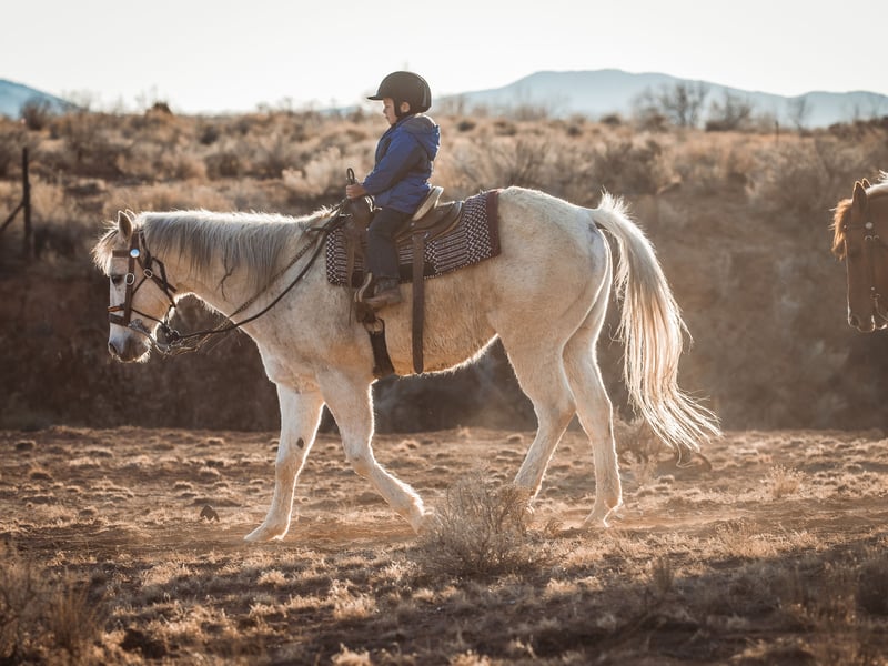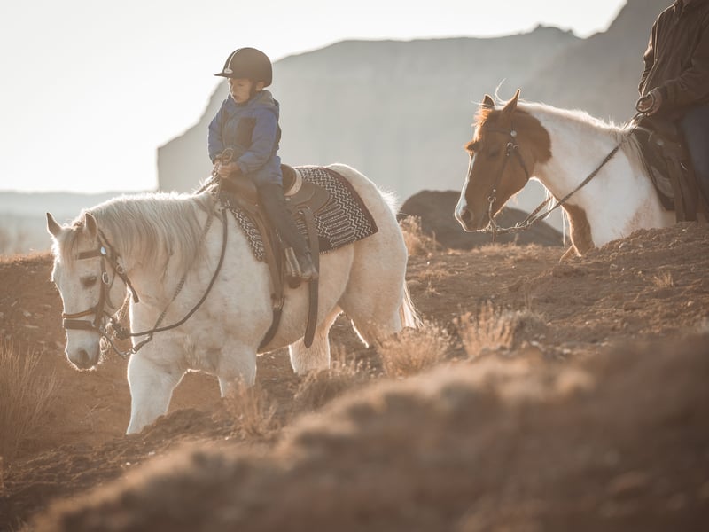 Riders must be ages 8+ and under 250 lbs; pregnant guests are not permitted. Each person rides their own horse; certified helmets are required for ages 8–17. Closed-toe shoes and waivers are required; rides operate in all weather—dress for conditions and arrive 5 minutes early.