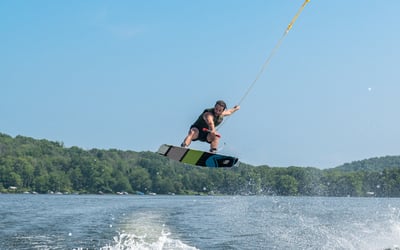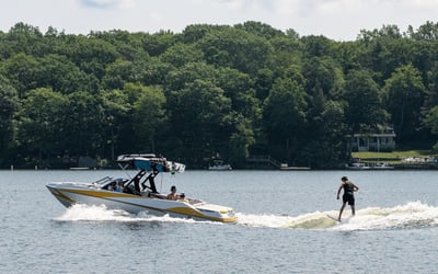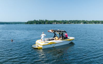 Ride a high-performance watersports boat for a flexible session on the lake. Choose to waterski, wakeboard, kneeboard, tube, or simply relax while a captain handles the boat and provides instruction.