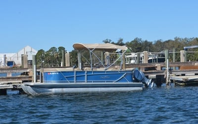 Explore Shell Island on a clean, easy-to-operate pontoon with space for 10