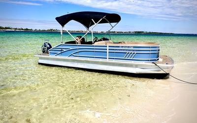 Explore Shell Island and St. Andrews Bay on a clean, easy-to-operate pontoon boat. Cruise with a Bluetooth radio and required safety gear.