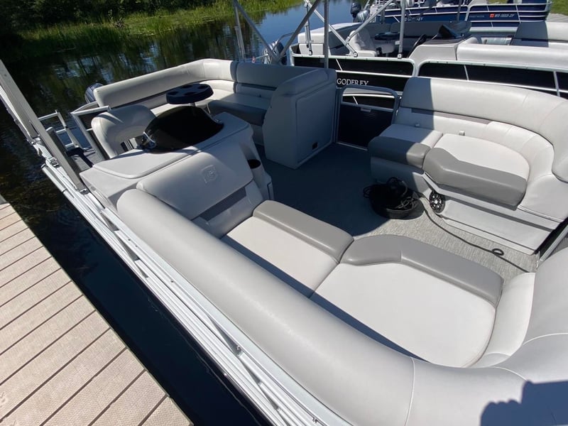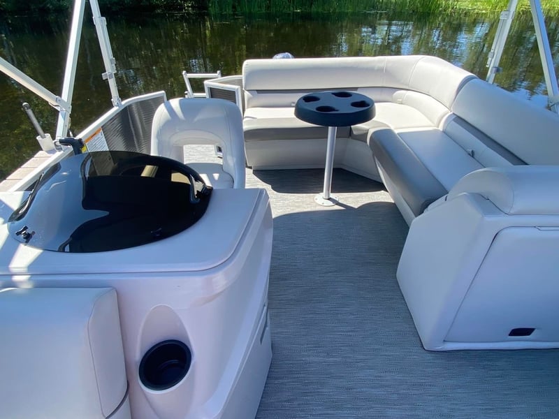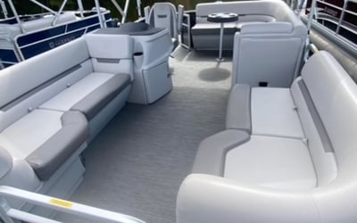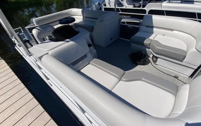 Rent a 19-foot pontoon boat for relaxed cruising with family or friends. Get a quick orientation before you launch and enjoy included safety gear.