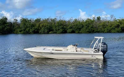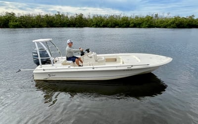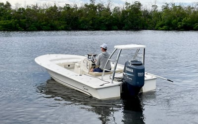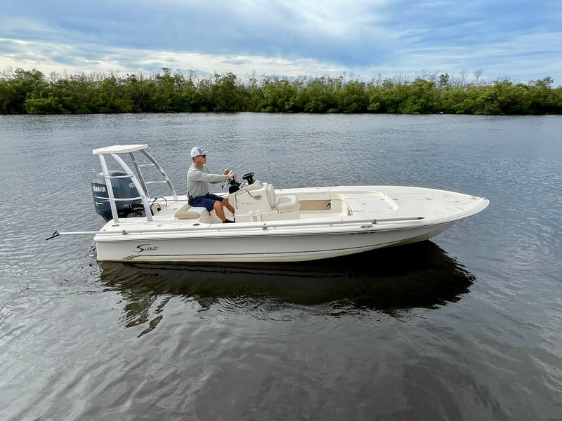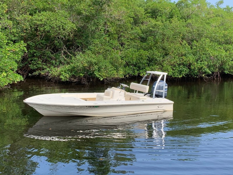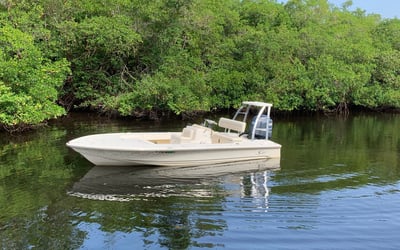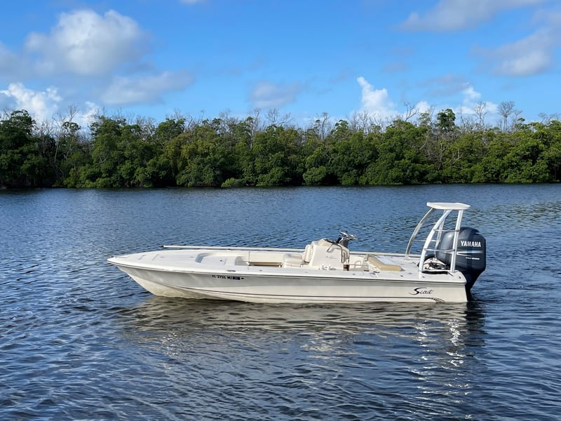 Experience a versatile 19′ Scout Flats boat, perfect for fly fishing adventures with friends or family. Enjoy flexible rental options and explore scenic waterways.