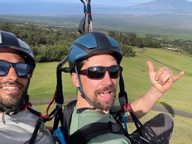 This was our first paragliding experience, and we did the Double K flight. I won’t lie—we were a little nervy going in and didn’t know what to expect, but it absolutely blew my mind. Peter, Christian, and Cruiser were amazing. They were incredibly patient, explained every step clearly, and made us feel comfortable from start to finish. Once we were in the air, I could fully relax and enjoy the experience. The views of Maui from the slopes of Mt. Haleakalā were unreal, and flying through the cool air was so peaceful. Throughout the entire flight, I felt completely safe and had full trust in my instructor. The only downside was that my child couldn’t participate because she’s 8 years old—but that just means we already have a reason to come back. We’ll definitely be returning when she turns 14. I can’t recommend Maui Paragliding enough—truly an unforgettable experience.