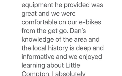Dan has built something special here with his e-bike tours and rentals. Reviewers consistently praise his flexibility and knowledge of the area, noting how he adjusts routes and pace to match different skill levels. The tours showcase Little Compton's quiet roads, beaches, and scenic beauty, with plenty of stops for photos and local history. People love that the e-bikes make the experience accessible even for inexperienced riders, and Dan provides all the basics like helmets and water bottles. Beyond the tours, Dan also sells e-bikes and handles rentals for groups. Guests appreciate his responsiveness, helpful recommendations (like lunch spots), and willingness to accommodate special requests like meeting groups at convenient locations. Locals even bring their out-of-town visitors back repeatedly. The overall vibe is welcoming and laid-back, perfect for anyone wanting to explore this beautiful Rhode Island coastal town at a comfortable pace with someone who genuinely knows and loves the area.
