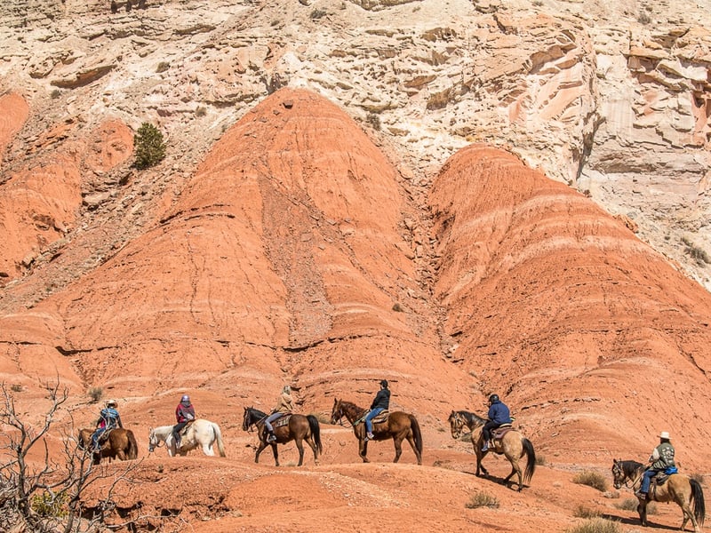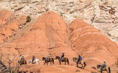 Saddle up for a guided horseback ride through Capitol Reef’s desert scenery. Trace washes shaped by the Water Pocket Fold and pass landmarks like Red Bluff, Windgate Tunnel, and a petrified forest. Beginners are welcome.