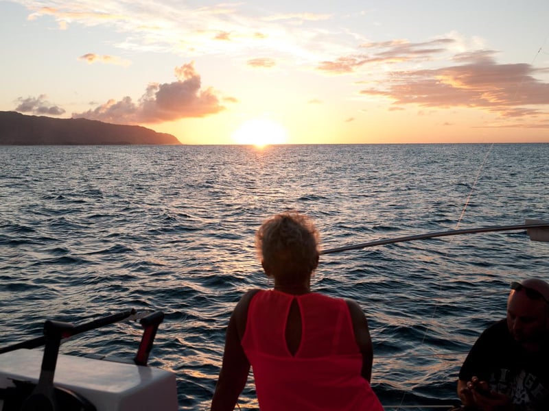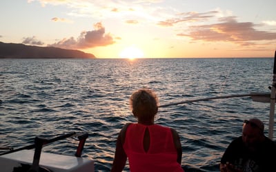 Sail along Oahu's North Shore for a peaceful two-hour voyage and watch vibrant sunset colors from the deck