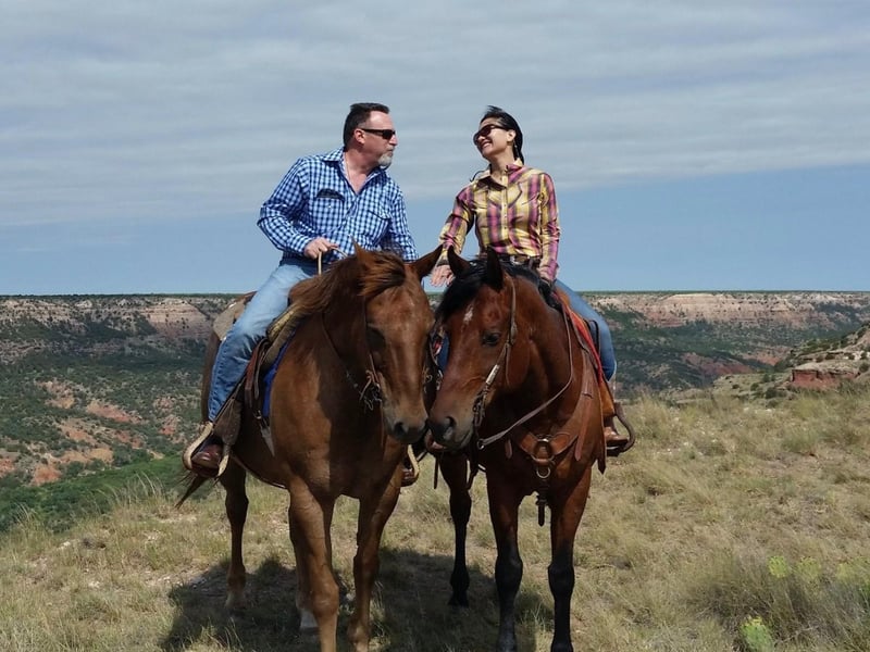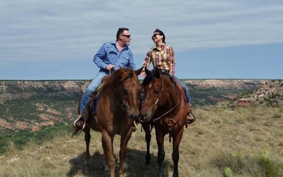 Ride American Quarter Horses on a real Texas ranch with Palo Duro Canyon views