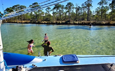Sail Choctawhatchee Bay with a captain, spot wildlife, and try steering the catamaran