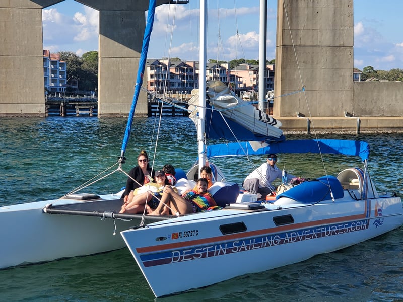Captain Kip and Elizabeth have clearly mastered the art of making guests feel special on the water. With a perfect 5-star track record, reviewers consistently praise their friendly, knowledgeable approach and the relaxed atmosphere they create. These are private charters on a 27-foot catamaran that seats up to six, so you get an intimate experience perfect for families or small groups. Guests love lounging on beanbag chairs under sail power, enjoying the peace without motor noise. Dolphin sightings are a frequent highlight, and several reviews mention stops at Crab Island for swimming and snorkeling. The captains clearly know where to find wildlife and the best spots to explore. Families with kids rave about how welcoming and patient both hosts are, and the experience has even served as the backdrop for a successful proposal during a sunrise cruise. Multiple guests called it the highlight of their vacation, citing everything from sunset cruises to mid-morning sails as relaxing, fun, and memorable ways to experience the Destin waters.