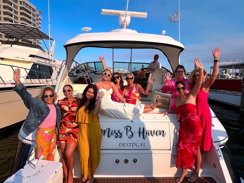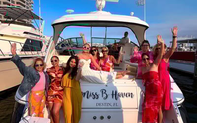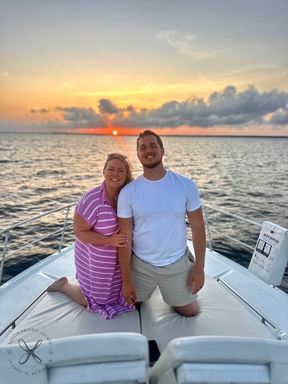 Savor a Destin sunset aboard a luxurious yacht, ideal for celebrations and groups up to 12