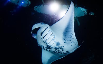 Experience Kona’s legendary manta rays on an exhilarating two-tank night dive.