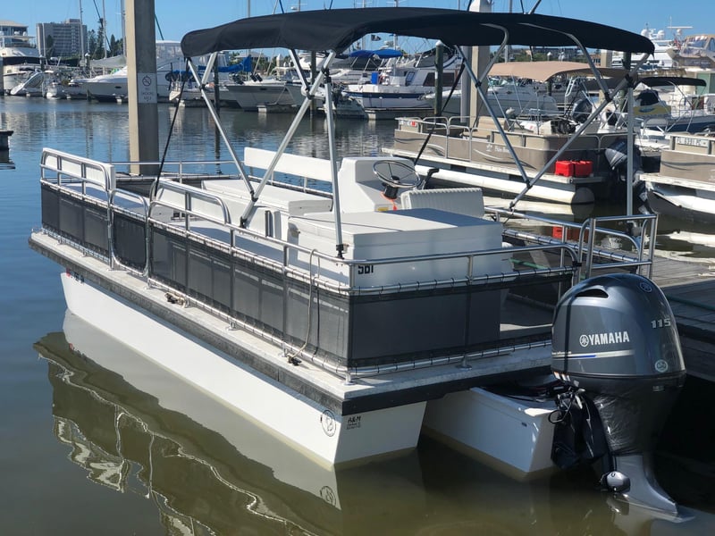 Take the helm of a 20' Summer Breeze trimaran powered by a Yamaha 115 HP. Gather your crew and enjoy time on the water with space for up to 10 passengers.