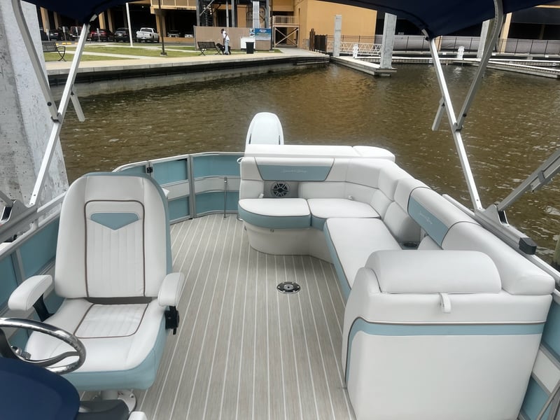 Cruise Biloxi waters on a smooth 200 HP tritoon for groups up to 14