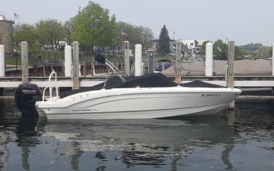 Enjoy a full-day bowrider with life jackets and shade, great for tubing and water skiing