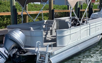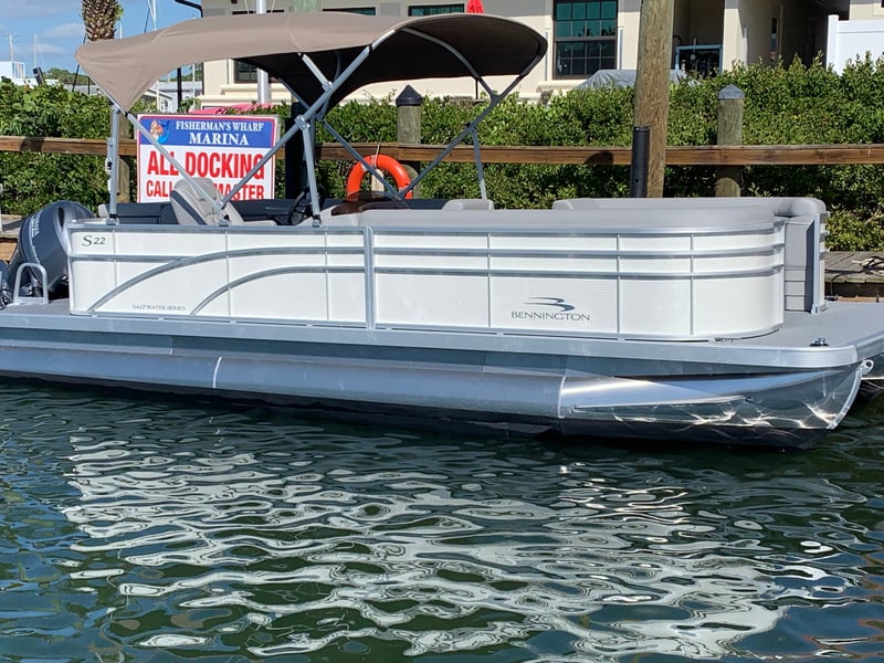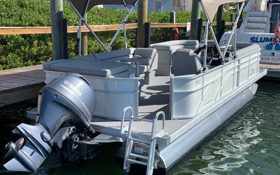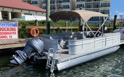 Explore the water aboard a 22’ Cruz White pontoon designed for comfort and ease. Choose a 4 or 8 hour rental and enjoy modern amenities.