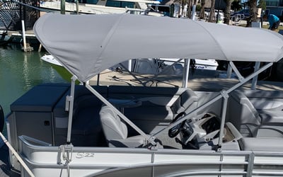Cruise the ICW on a 22-foot pontoon, the Silver Bullet. Enjoy spacious seating, shade, swim access, and modern navigation.