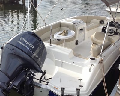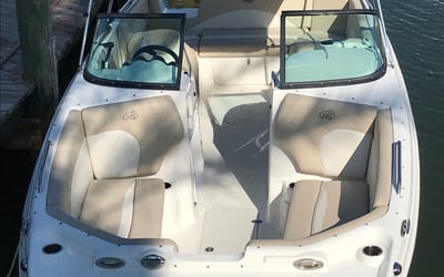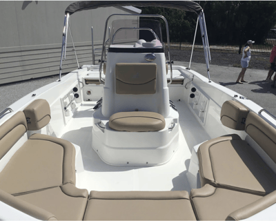 Cruise the ICW or Gulf on a spacious 22’ deck boat with Bluetooth stereo, bimini, and room for up to 10