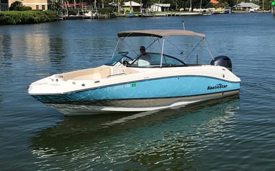 Head out on the Intracoastal Waterway or the Gulf aboard a 22’ Nauticstar deckboat. Enjoy room for up to 10 passengers plus comfort features and helpful navigation tools.