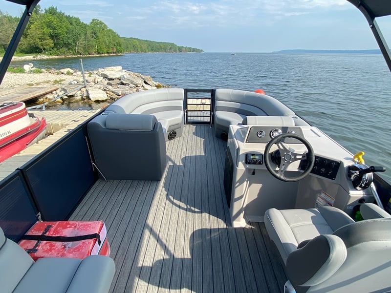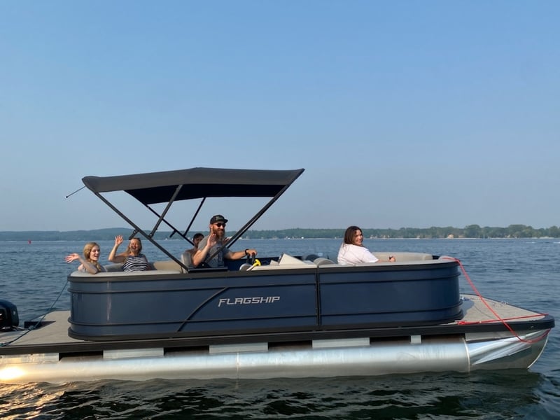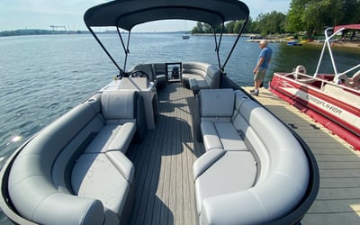 Cruise Sturgeon Bay with up to 10 friends on a comfortable pontoon equipped with Bluetooth stereo