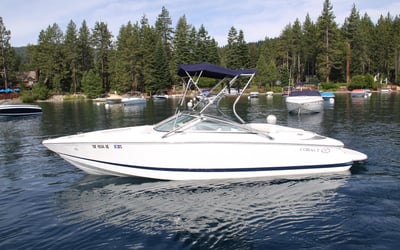 Enjoy your own 24-foot Cobalt runabout on Lake Tahoe with a driver, perfect for cruising and water sports. Choose the rental length that fits your day and relax on the water.