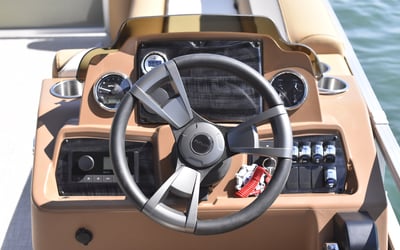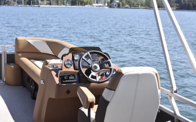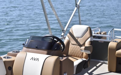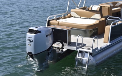 Cruise or float on a spacious 27-foot pontoon with a 150 hp Honda motor