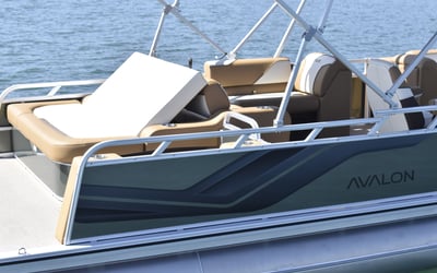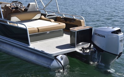 Relax aboard a 27' Rear Lounger pontoon powered by a 150 hp Honda outboard. It’s ideal for parties who want to cruise or float and can pull a tube.
