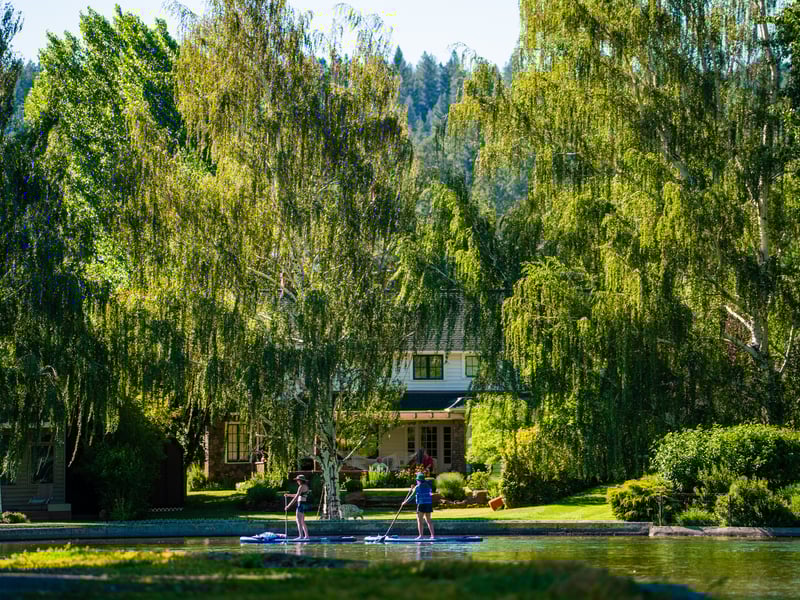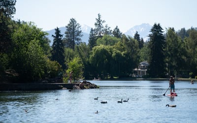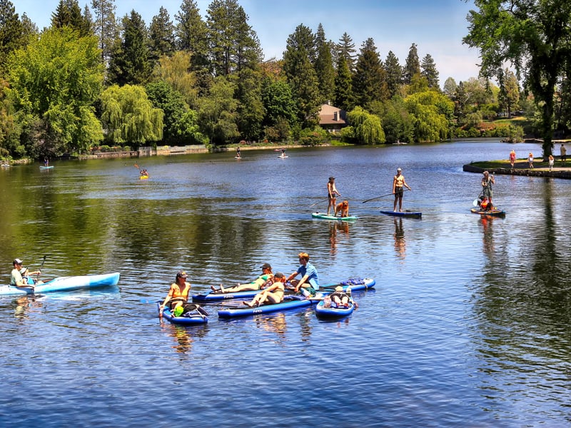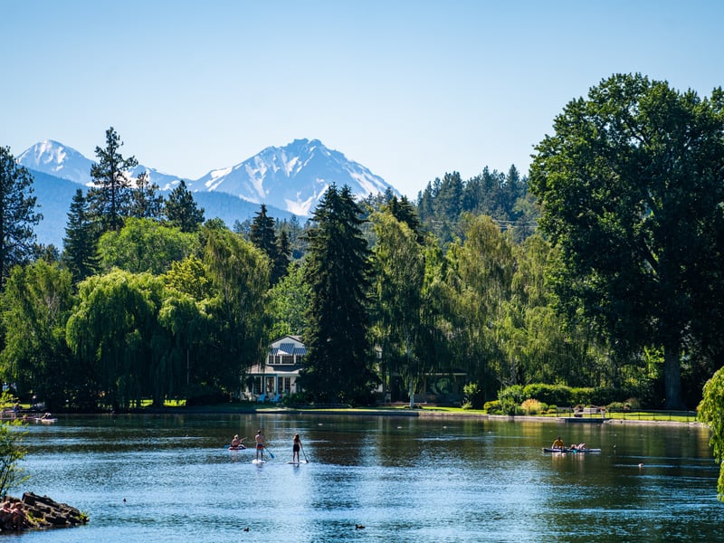 Meet at Pageant Park for a hassle-free paddle with curbside delivery to the dock across the wooden footbridge from Drake Park. You have 3.5 hours to explore Drake Park, the whitewater area, and Mirror Pond before returning to your put-in.