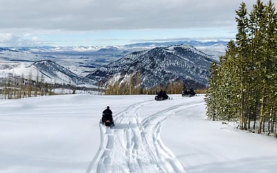 Combine a guided Colorado snowmobile tour with snow tubing. Ride to the tubing hill, get towed to the top, then slide down lanes at varied speeds.